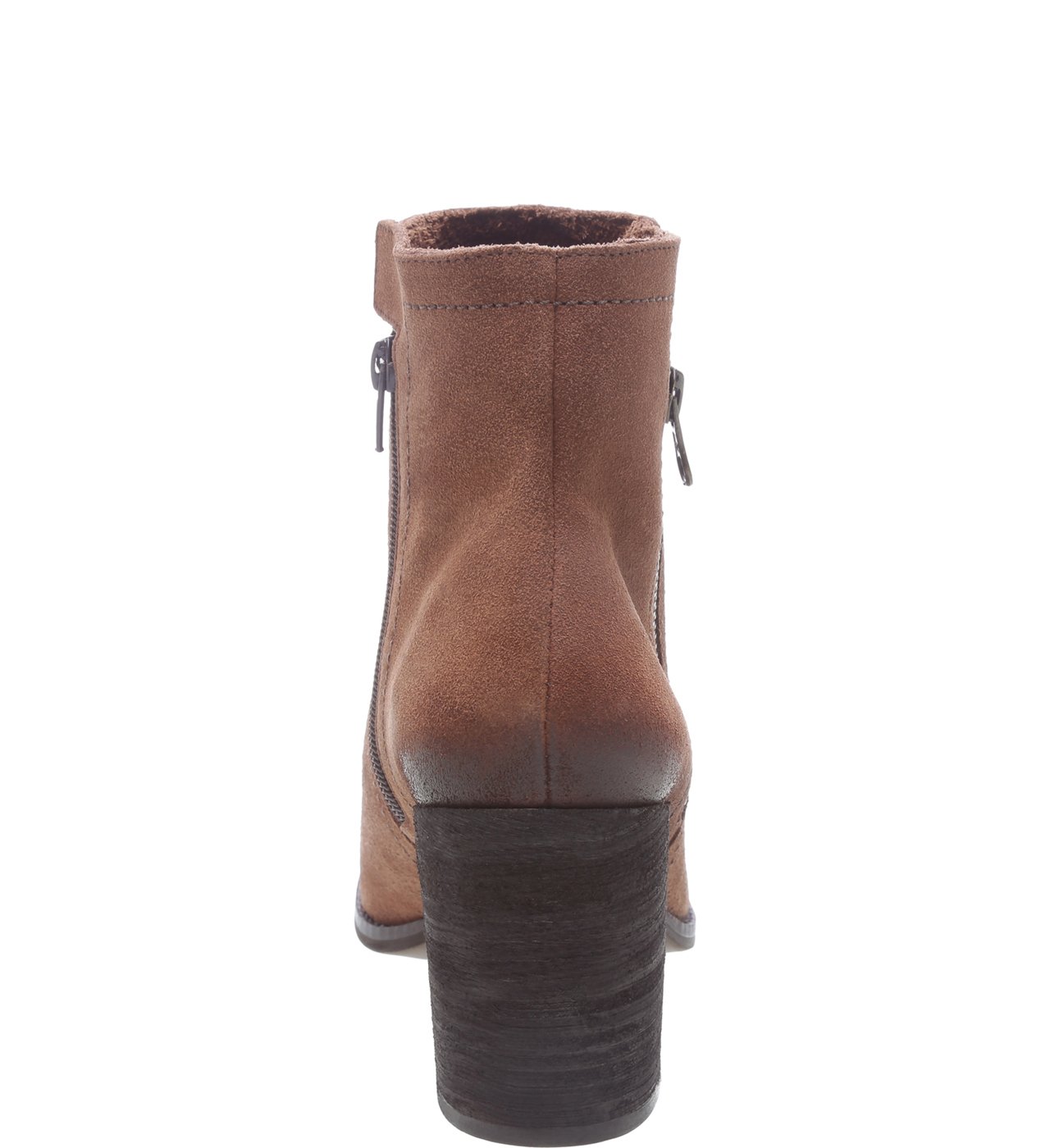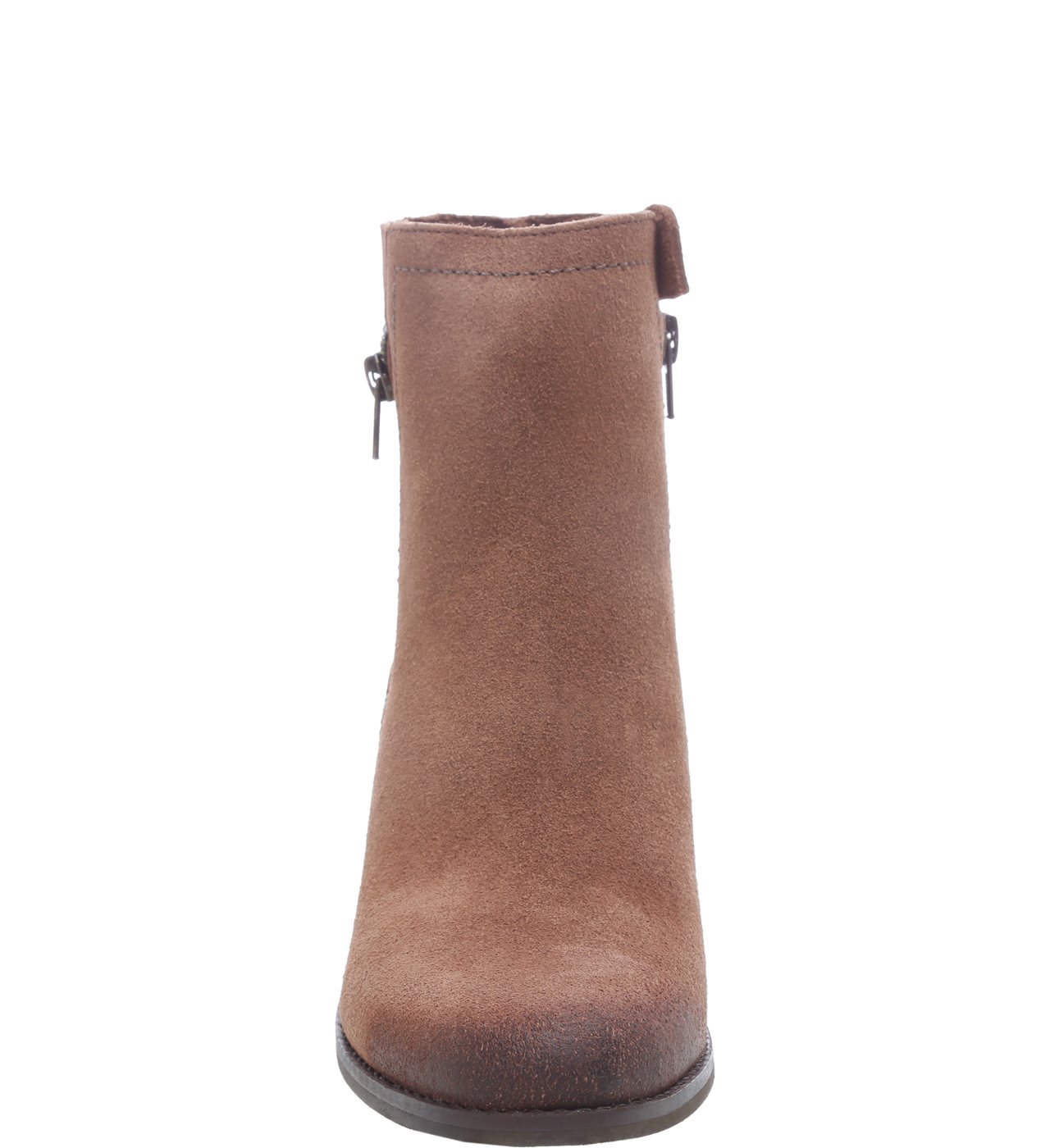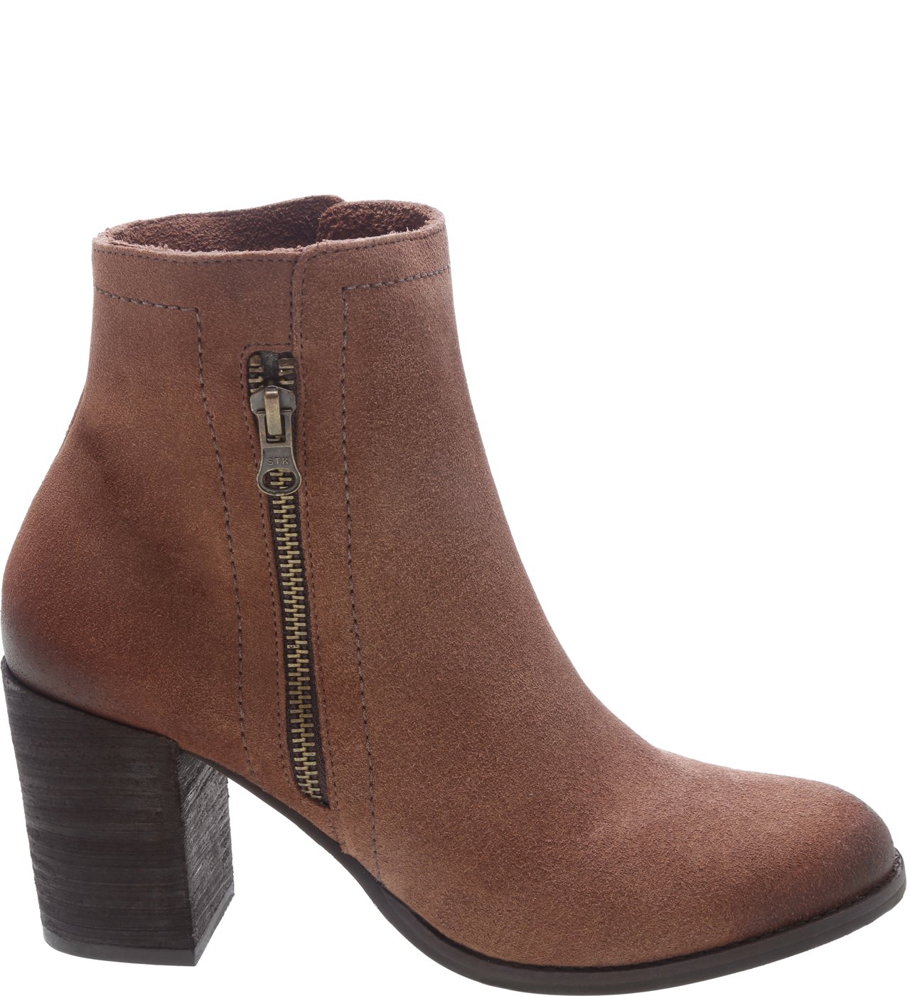 Básica, a bota de cano baixo de salto bloco médio é curinga e pode ser usada compondo diferentes visuais. Em camurça na cor marrom Taupe, o modelo tem bico levemente redondo e fechamento feito por zíper lateral.